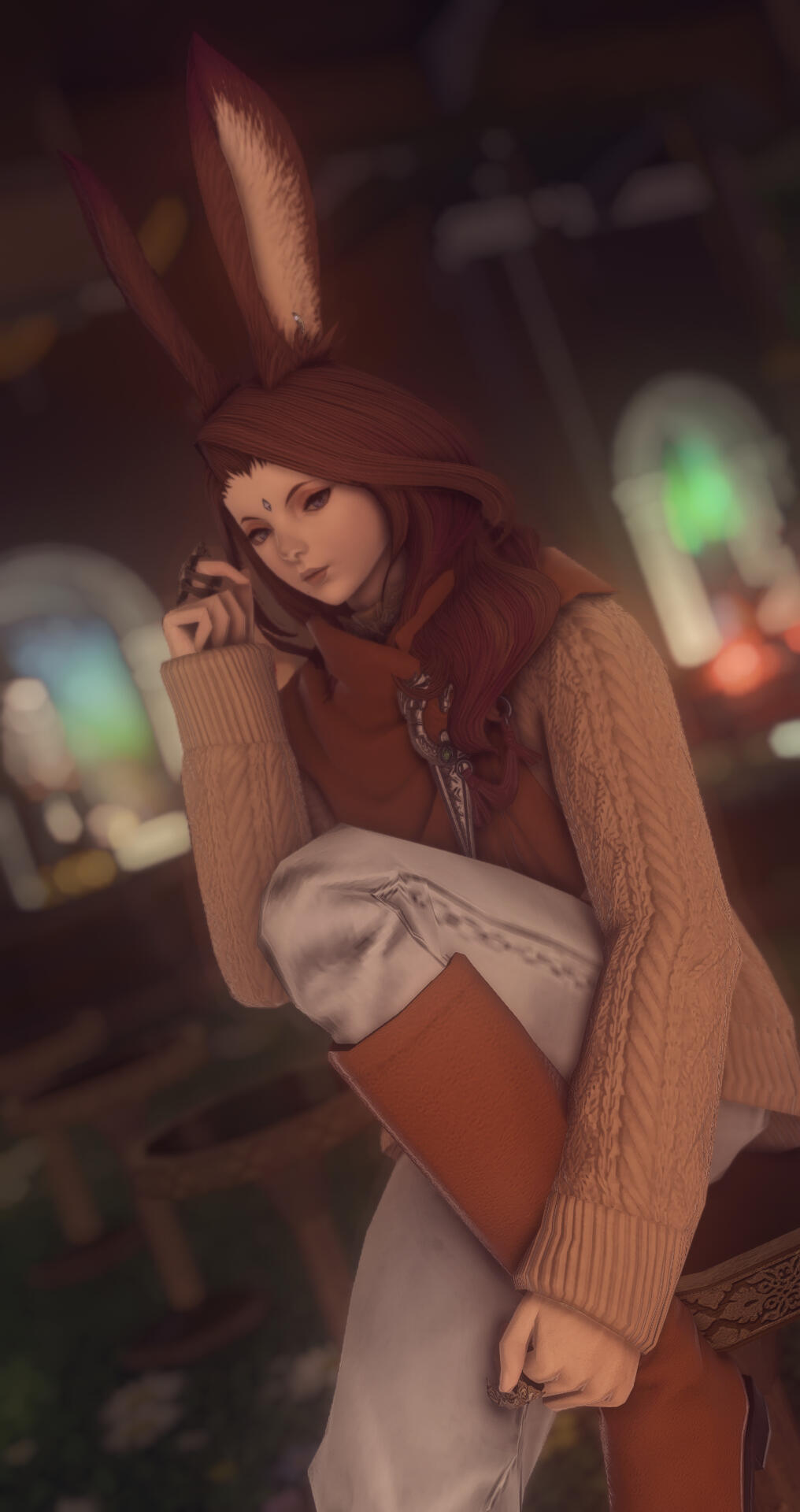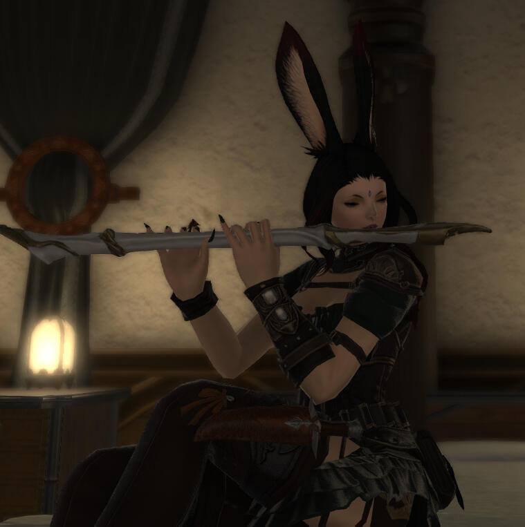For a while she was content with this simplistic lifestyle, but as she grew into adulthood, she yearned for something more than tribal life. With a letter stating she was leaving, Yvonne left ‘The Forest’ she called home, shedding her name and taking up a new one. Sunako Mori. It wasn’t long upon arriving in Eorzea, that she was ridiculed and not taken seriously by anyone, unable to find work due to this, that she donned helmets, hoods, anything to hide her ears to make her seem more Hyur or Elezen-like, which eventually left her ears scarred and permanently missing some tufts of fur.